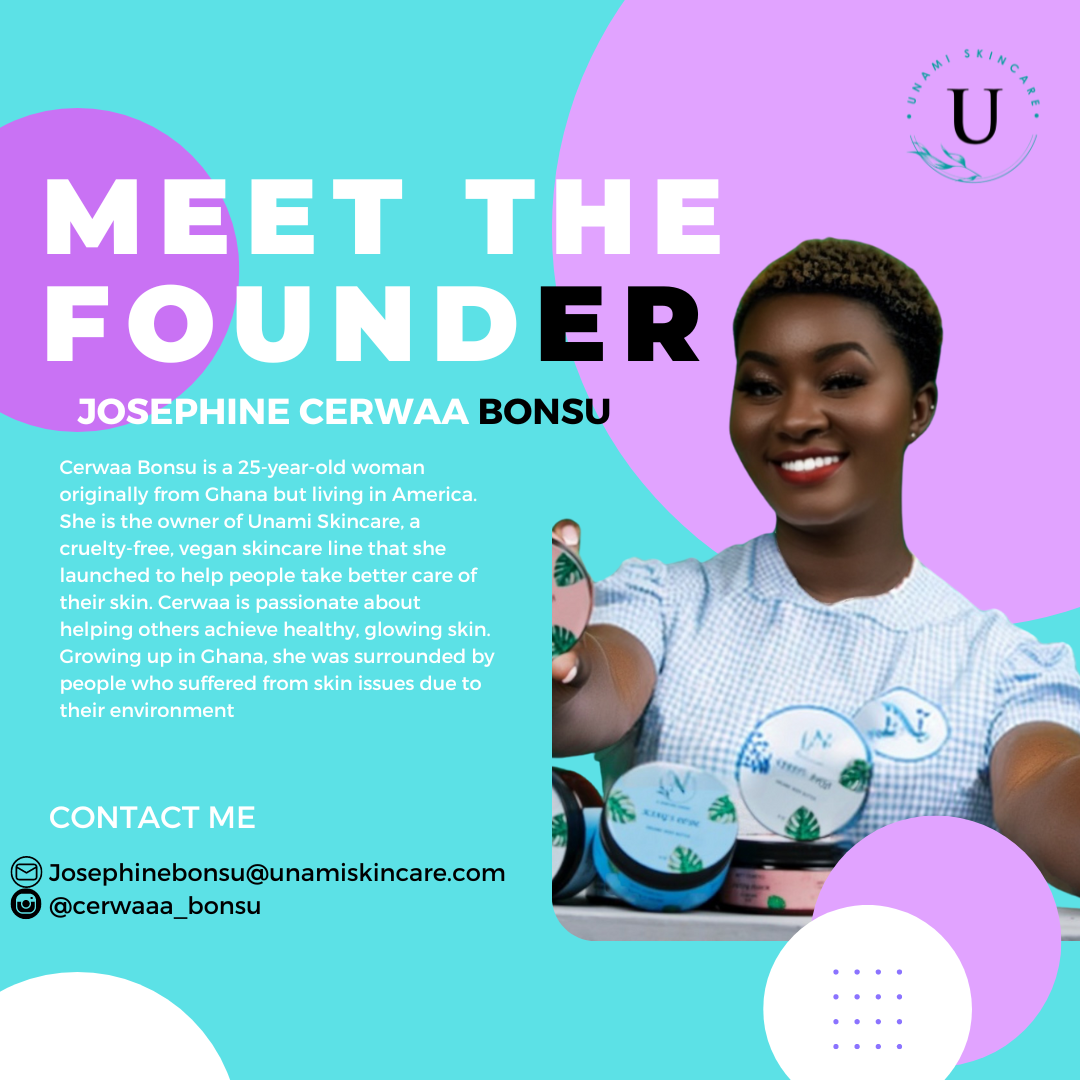 Our company is headed by Cerwaa Bonsu, who is originally from Ghana but now lives in America. With a passion for natural and organic skincare, Cerwaa has created a unique line of products that are specifically tailored to each individual’s skin type and concerns. Cerwaa is an experienced entrepreneur, and her commitment to quality and sustainability ensures that every customer is taken care of.